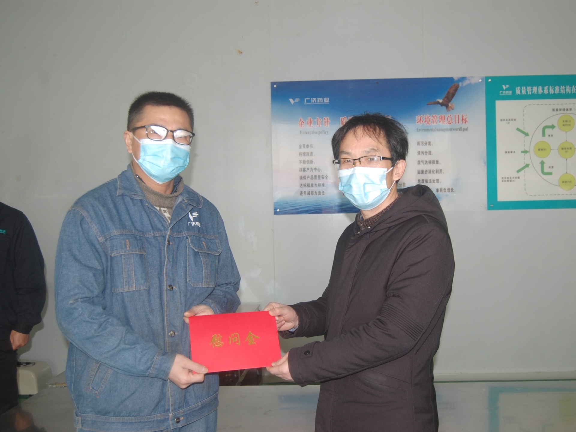 1月18日-20日,在新春佳节来临之际,广济药业党委副书记、董事长阮澍组织公司领导班子开展春节走访慰问活动,深入职工家中、一线实地走访慰问困难职工,为他们送去诚挚的问候和春节的祝福。公司党委委员、纪委书记、工会主席阮忠义,党委委员、副总经理王欣、卢正东,副总经理郭韶智,财务总监胡明峰,董事会秘书郑彬分别带队走访慰问困难职工。
