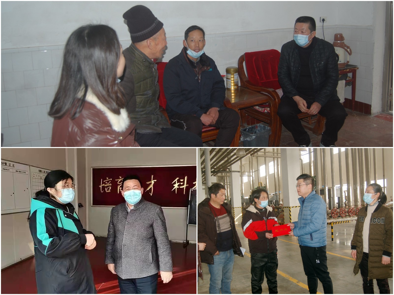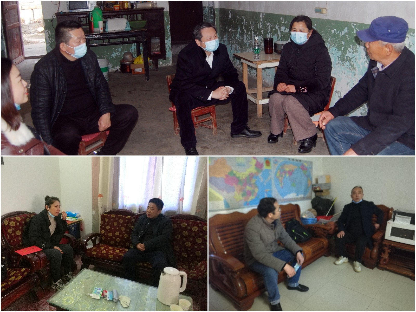图: 公司领导班子在困难职工家中、一线交流、座谈