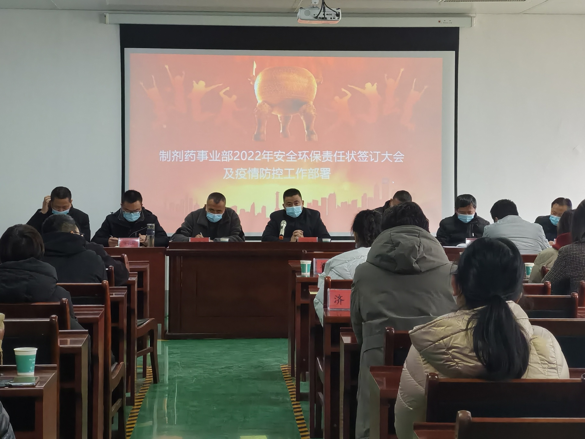 1月13日,制剂药事业部组织召开2022年安全环保责任状签订暨疫情防控工作部署会。广济药业财务总监,济康公司董事长胡明峰出席会议并讲话,济康公司副总经理周建新主持会议。