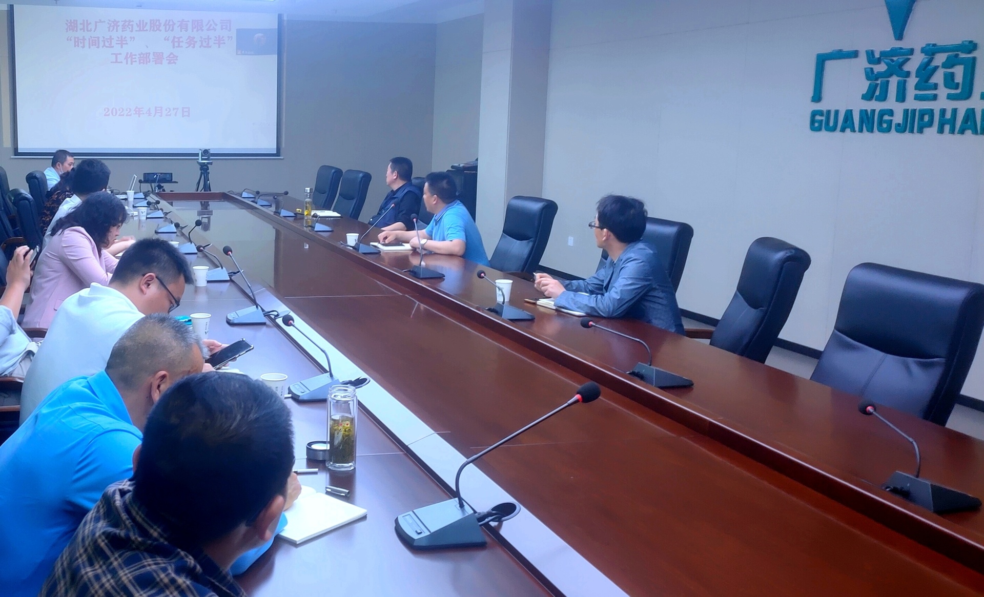 4月27日下午,广济药业召开2022年一季度经营分析调度会,就“双过半”“双达标”工作进行了具体的安排和部署。公司党委副书记、董事长阮澍及其他高管出席会议,公司财务总监胡明峰主持会议。